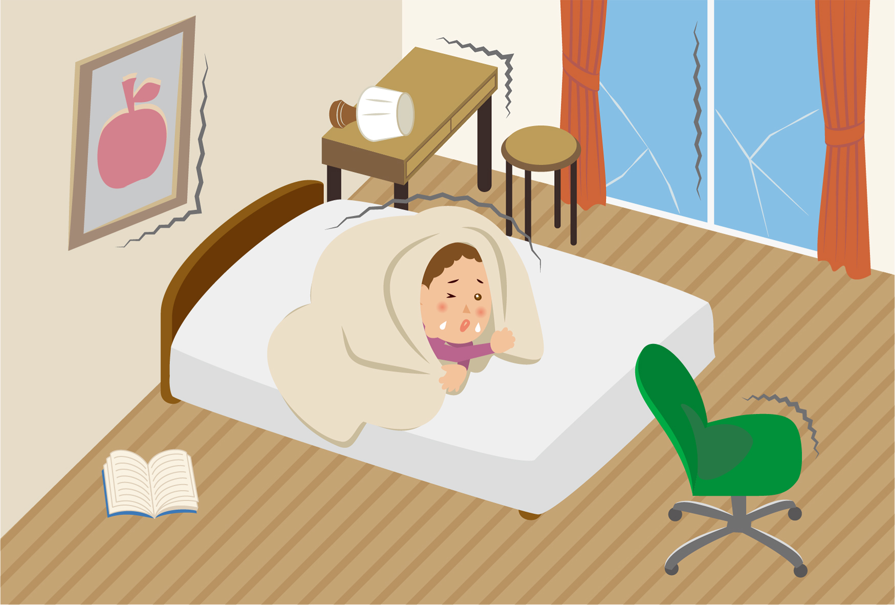 地震が 起きたら、慌てずに 行動することが 大切です。