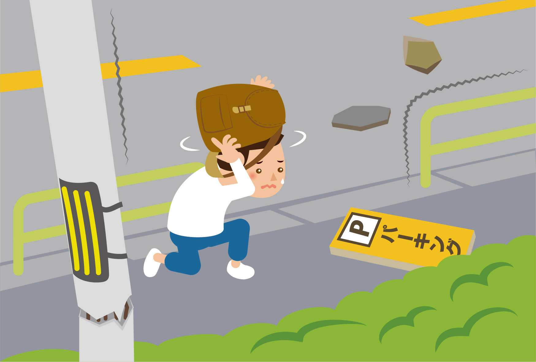 揺れているときに 外に 出ようとすると、転んだり、物が 落ちてきたりして、とても 危ないです。