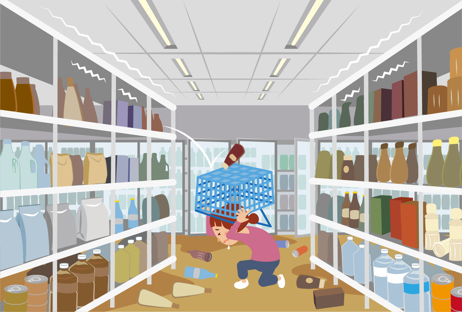 揺れるのが 終わったら、駅の 係の 人の 言うとおりにします。 - スーパーや コンビニに いるとき
