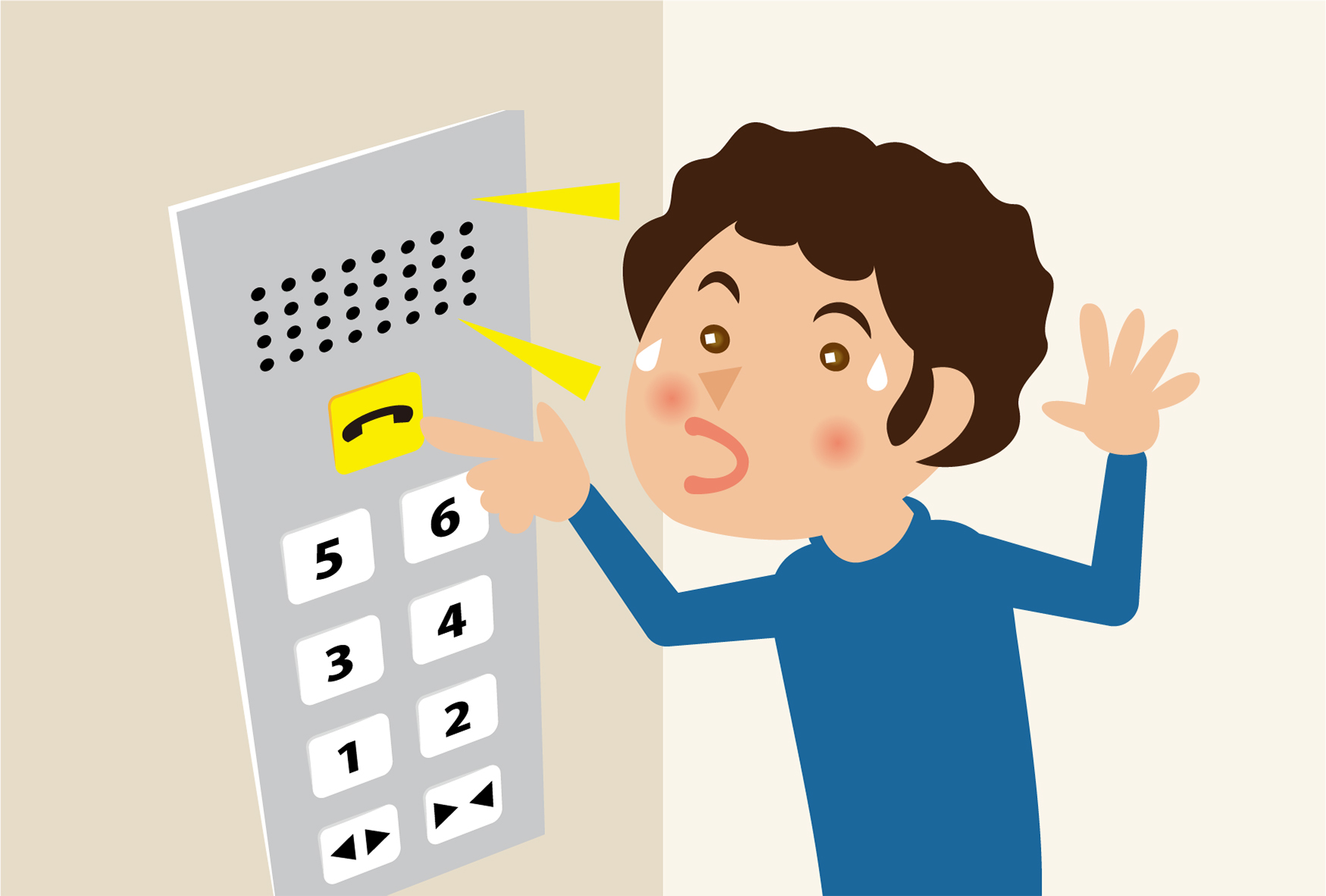 ドアが 開かないときは、インターホンで 係の 人と 連絡を 取り、言われたとおりに します。