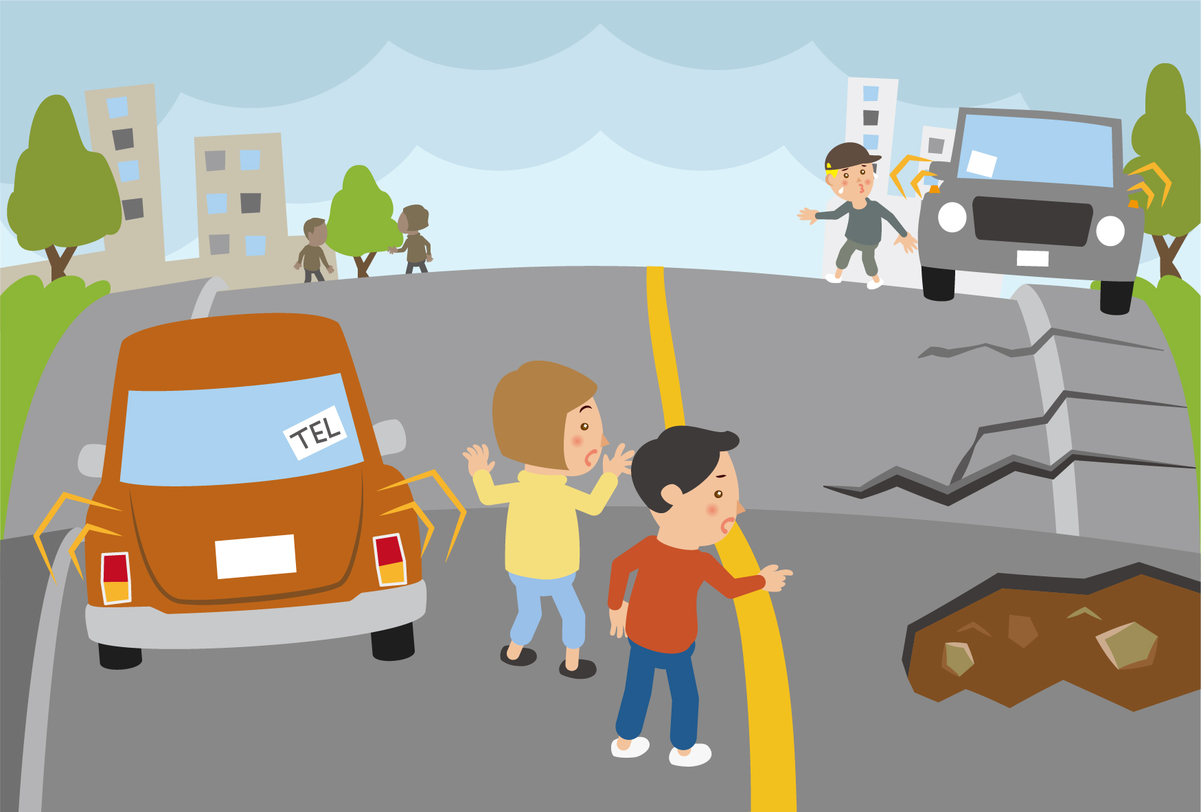 - 逃げるときに 車は 使いません。みんなが 車を 使うと、緊急の 車が 通れなくなって しまいます。