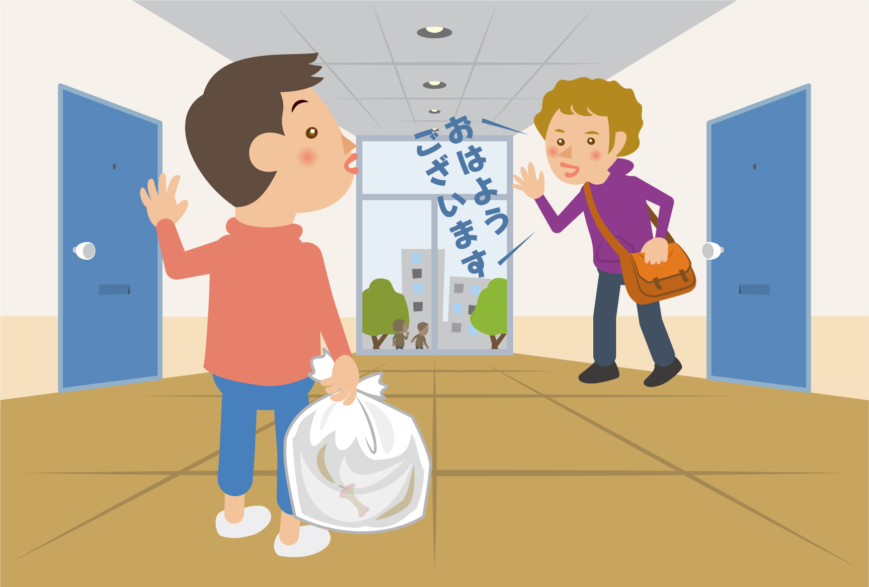 そのためには、いつも 近所の 人と 挨拶など をして、知り合いに なって おきましょう。