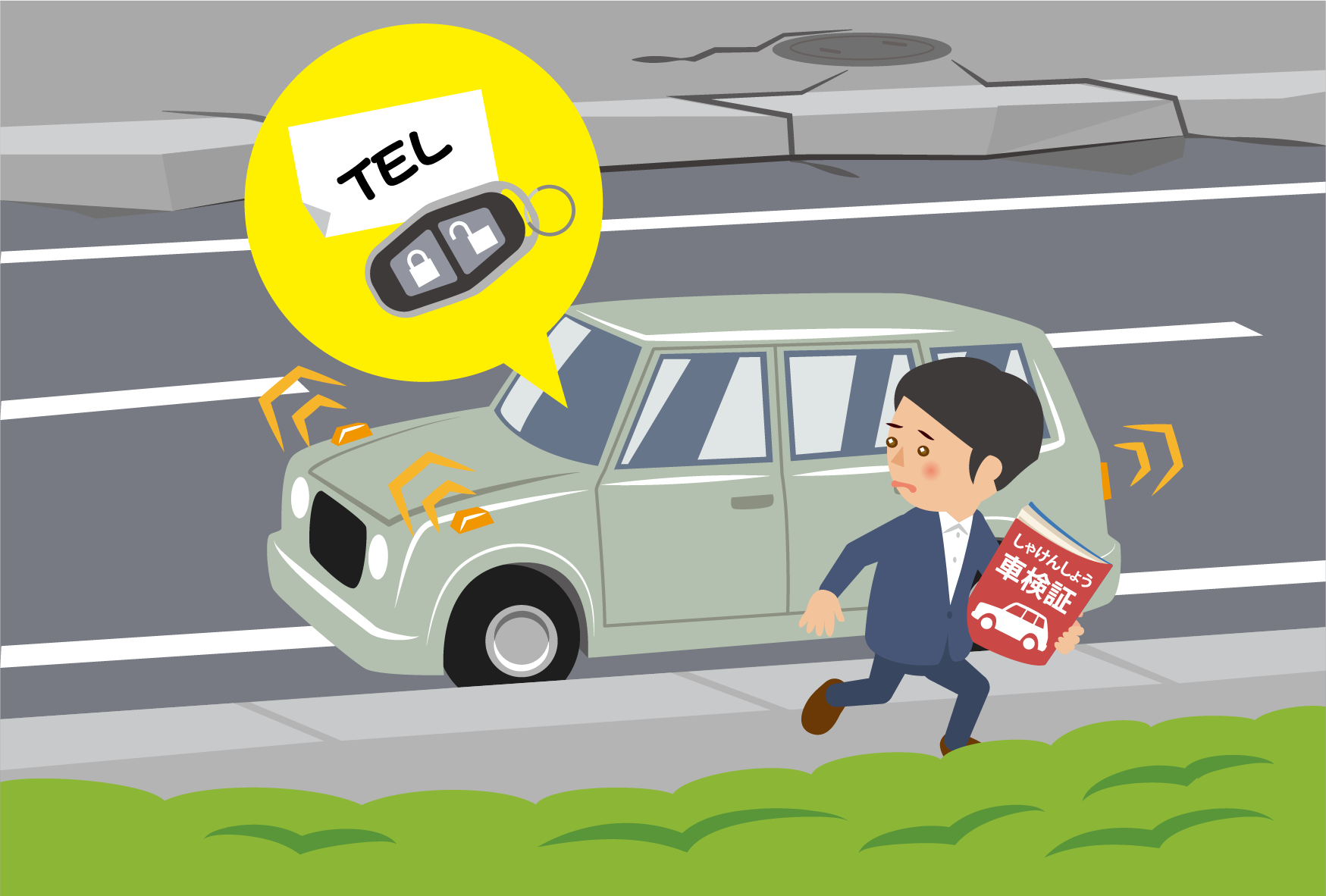 緊急の車(救急車・消防車・警察の車)が通るため、車を置いて避難するときは、車をいつでも動かすことができるようにしておきます。