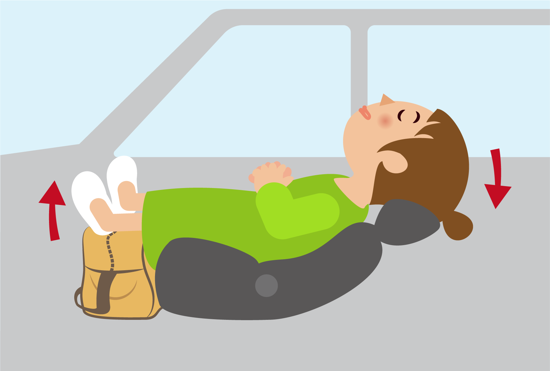 - 寝るときはシートを倒して足を上げます。(カバンなどを使うといいです)