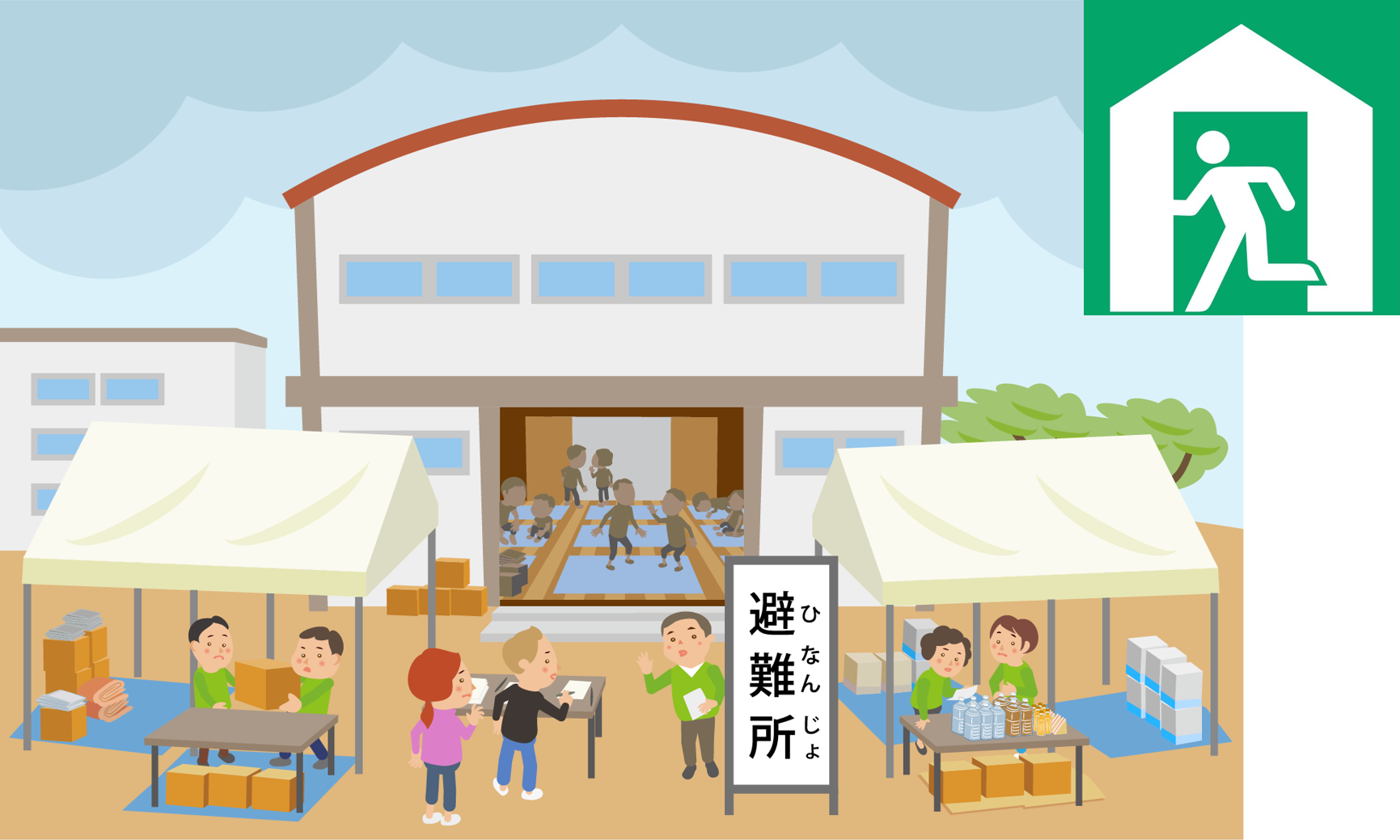 災害で家に住むことができないときに、生活する場所です。