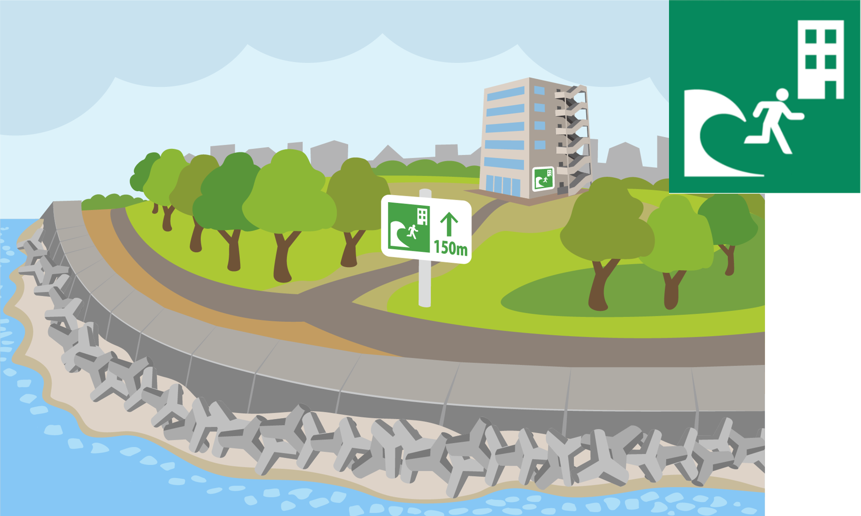 津波避難場所や津波避難ビルには、次の絵があります。