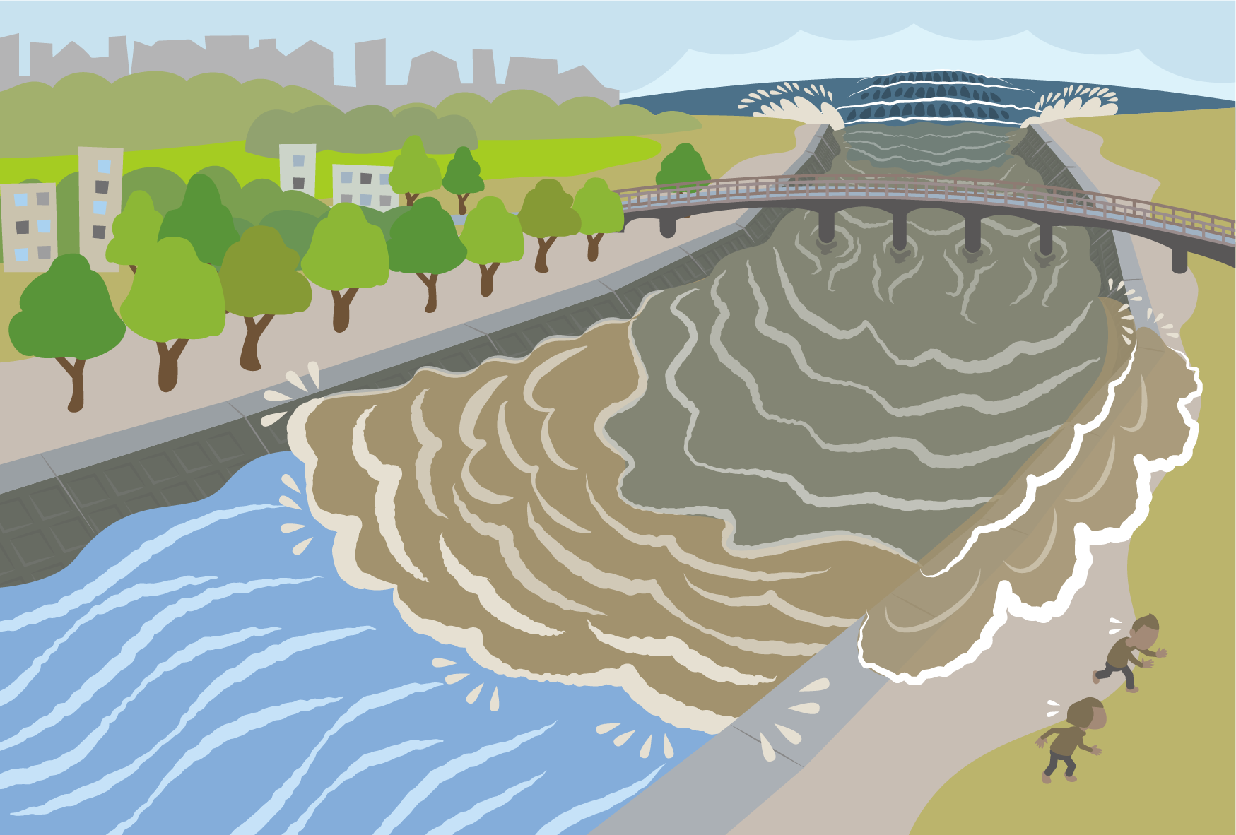 津波は、川をさかのぼってくることもあります。