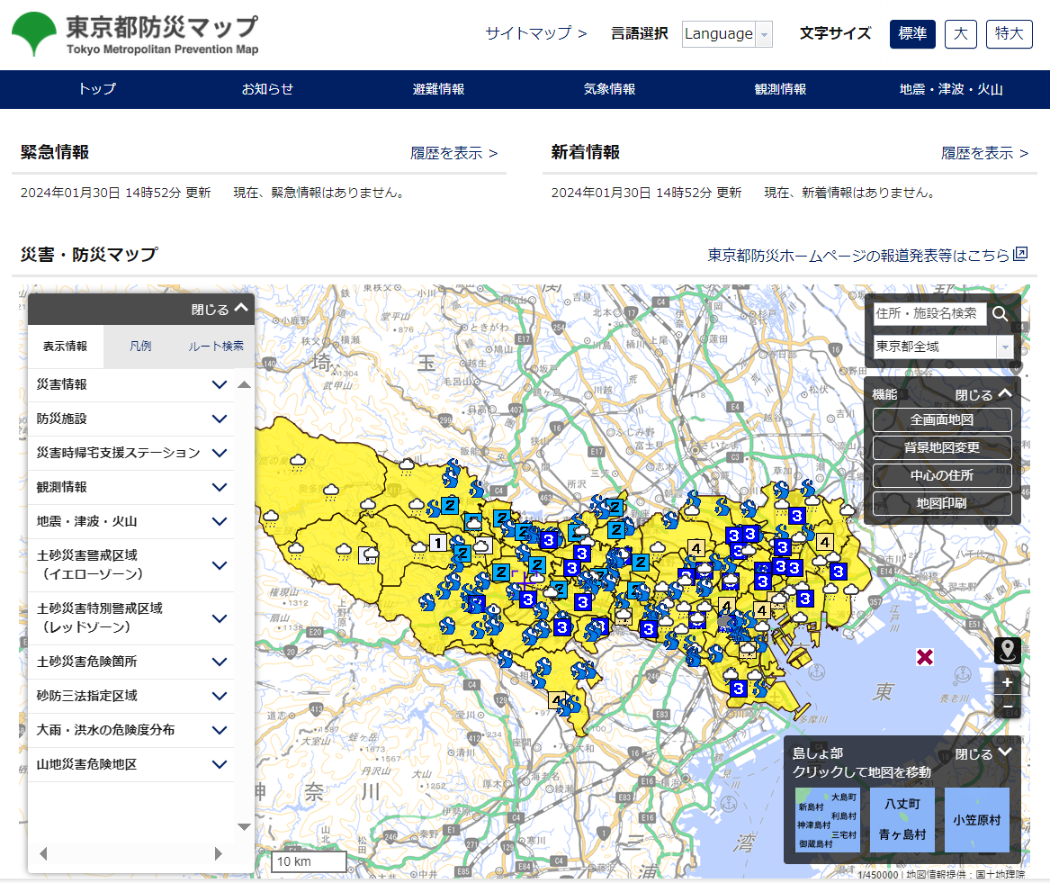 ■東京都防災マップ(東京都総務局総合防災部)https://map.bosai.metro.tokyo.lg.jp/(機械翻訳あり(英語・中国語・韓国語))