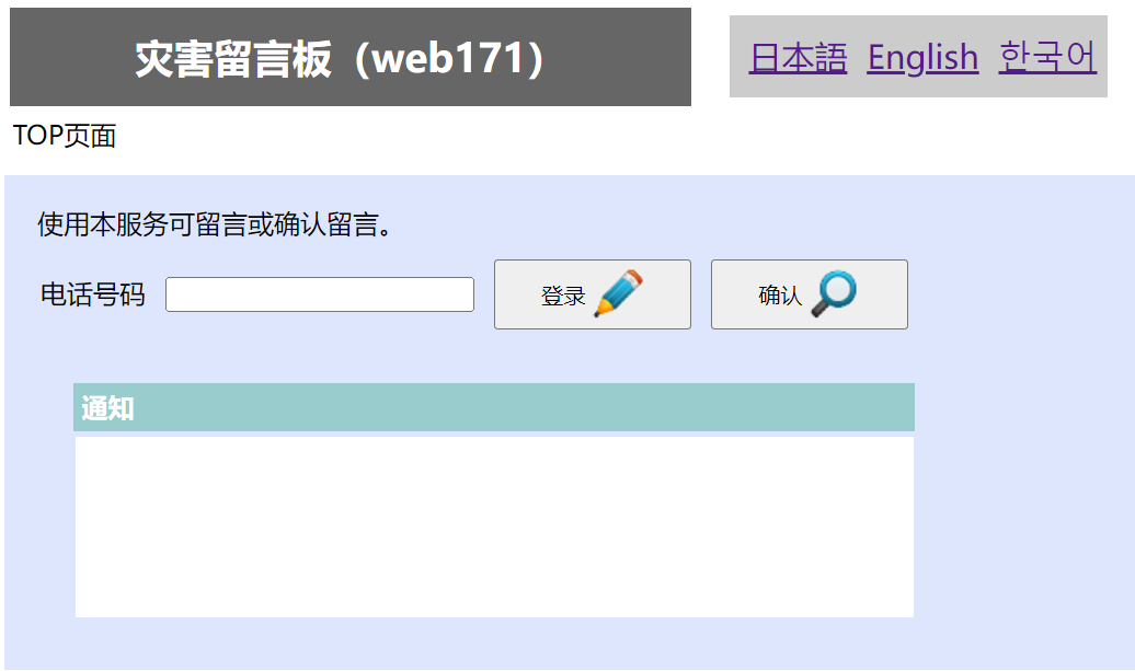 災害用留言板(web171)(NTT东日本/NTT西日本)