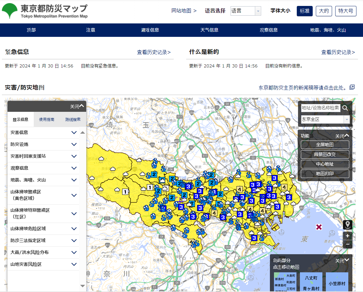 可以了解东京都的灾害信息、避难信息、避难所等信息。