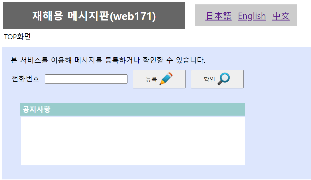 재해용 메시지판(web171)(NTT동일본・NTT서일본)