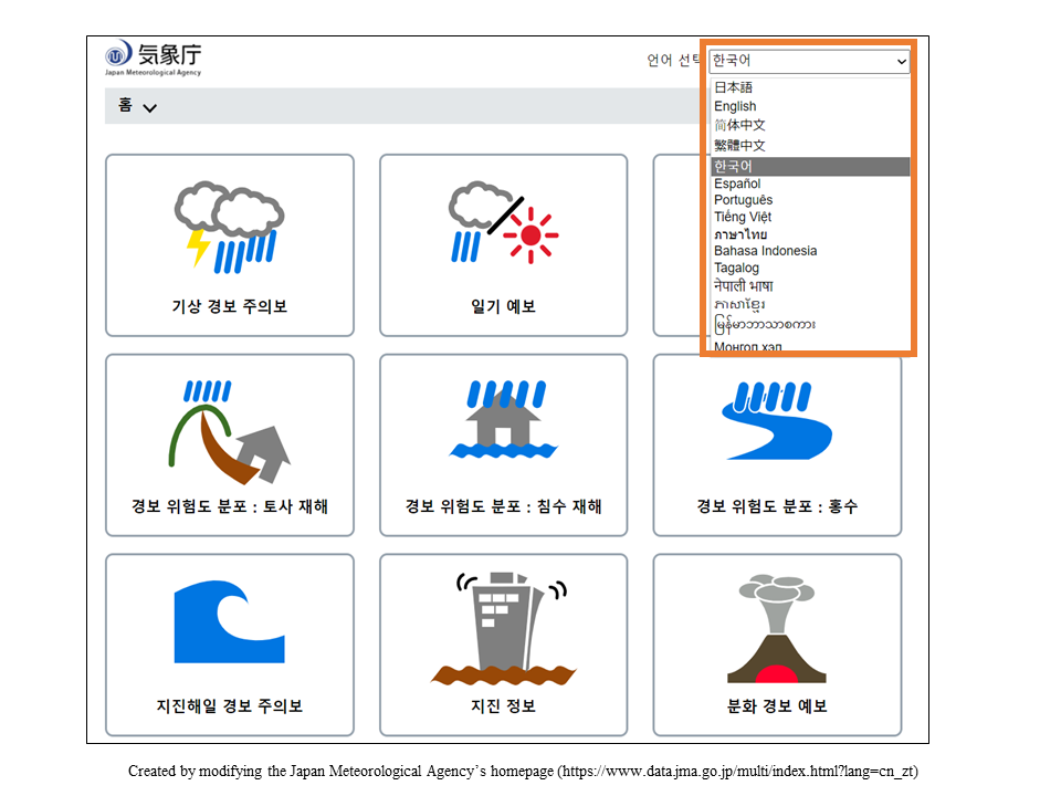 재해 정보 및 대피 방법 등을 알 수 있는 앱입니다.(14개 언어)
