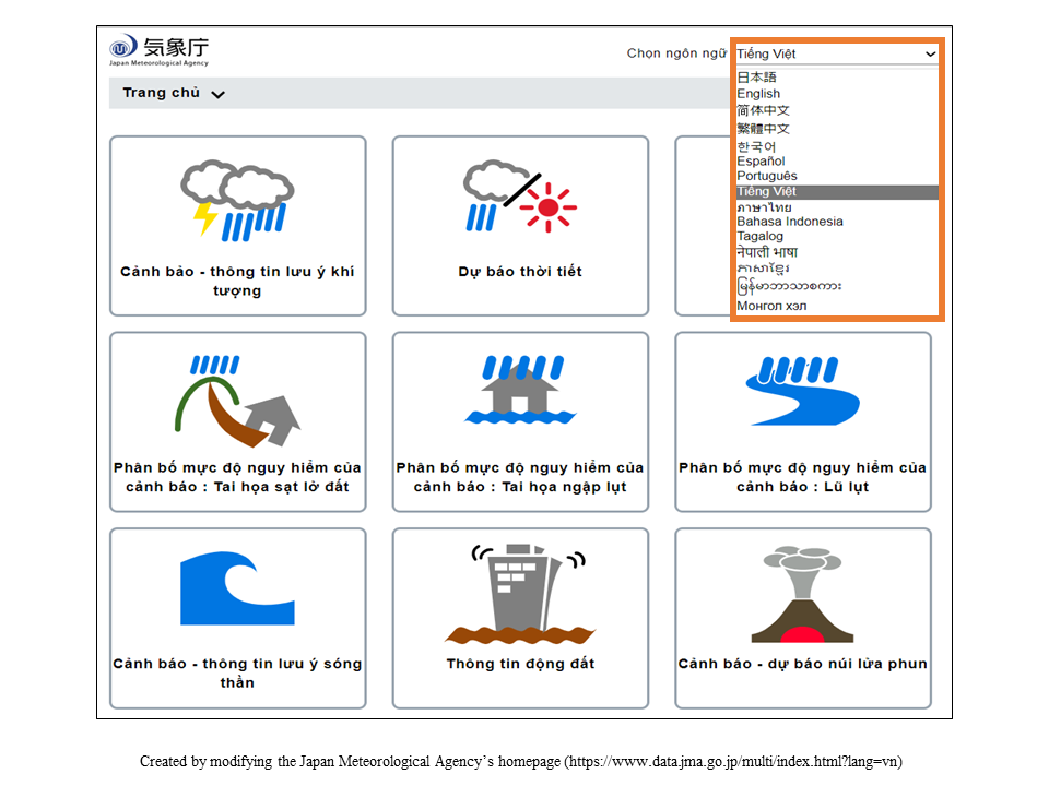 [Toàn quốc] Trang web của Cơ quan Khí tượng Nhật Bản (14 ngôn ngữ)