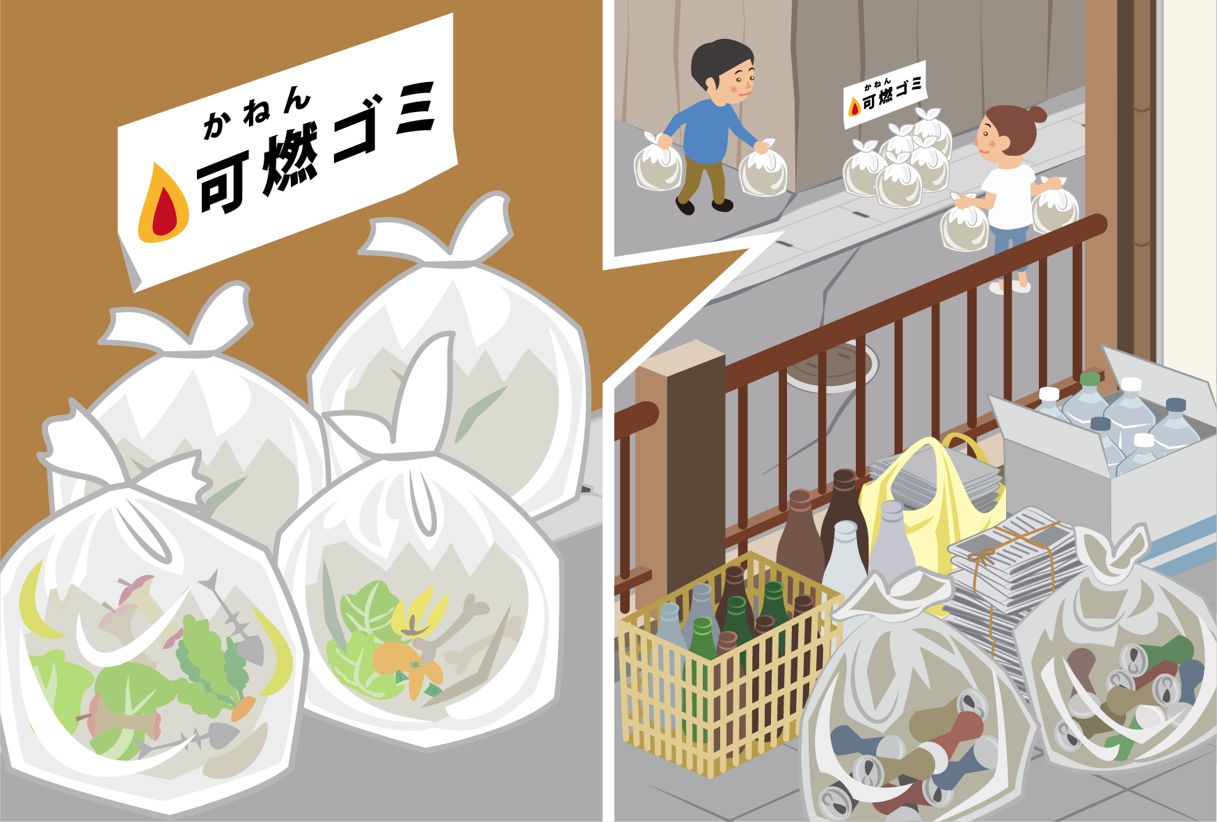 ごみ収集車が来るまでは、自分の家でごみを保管してください。 -