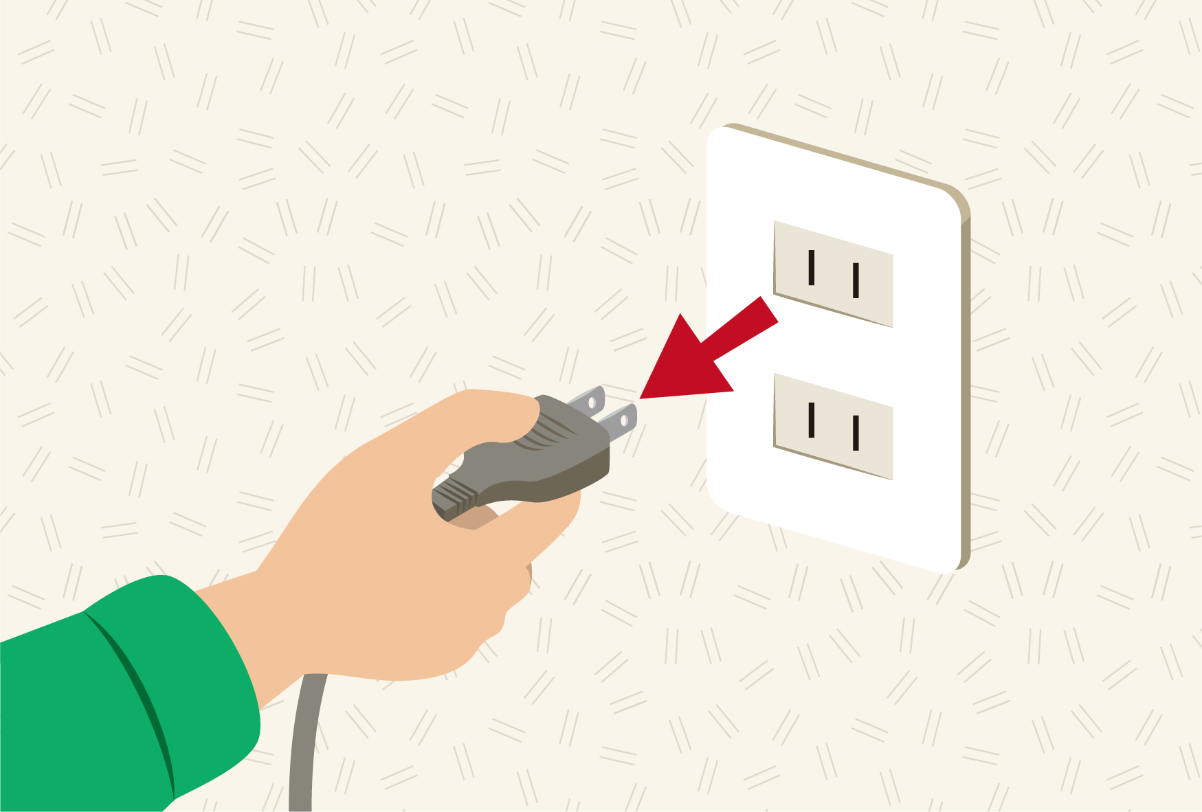 コンセントをさしたままだと、電気を使うことができるようになったときに、火事になることがあります。