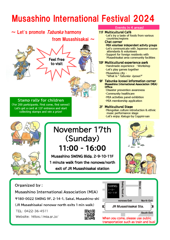[Nov. 17th (Sunday)] Musashino International Festival 2024 ~Let's promote Tabunka harmony from Musashisakai~ -