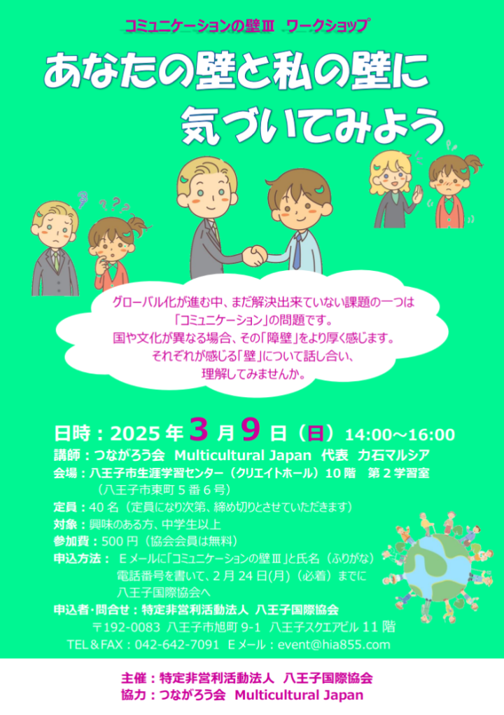 [Hachioji-city] The 3rd Communication Barrier Workshop "Let's notice and understand our communication walls" -