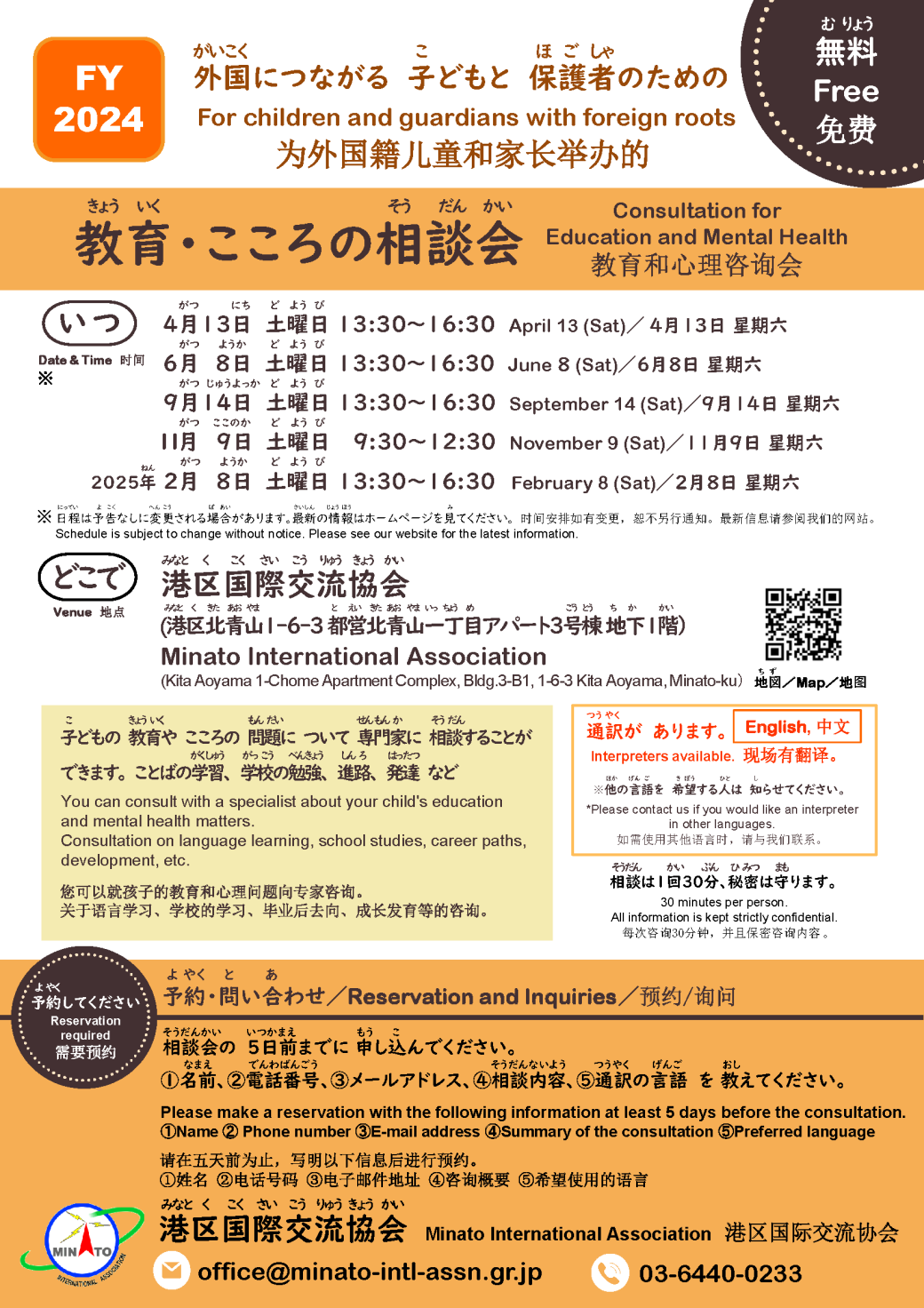 【Minato city】Consultation for Education and Mental Health for children and guardians with foreign roots