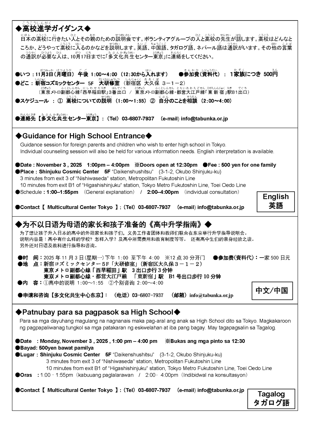 Flyer (Japanese, English, Chinese, and Tagalog)