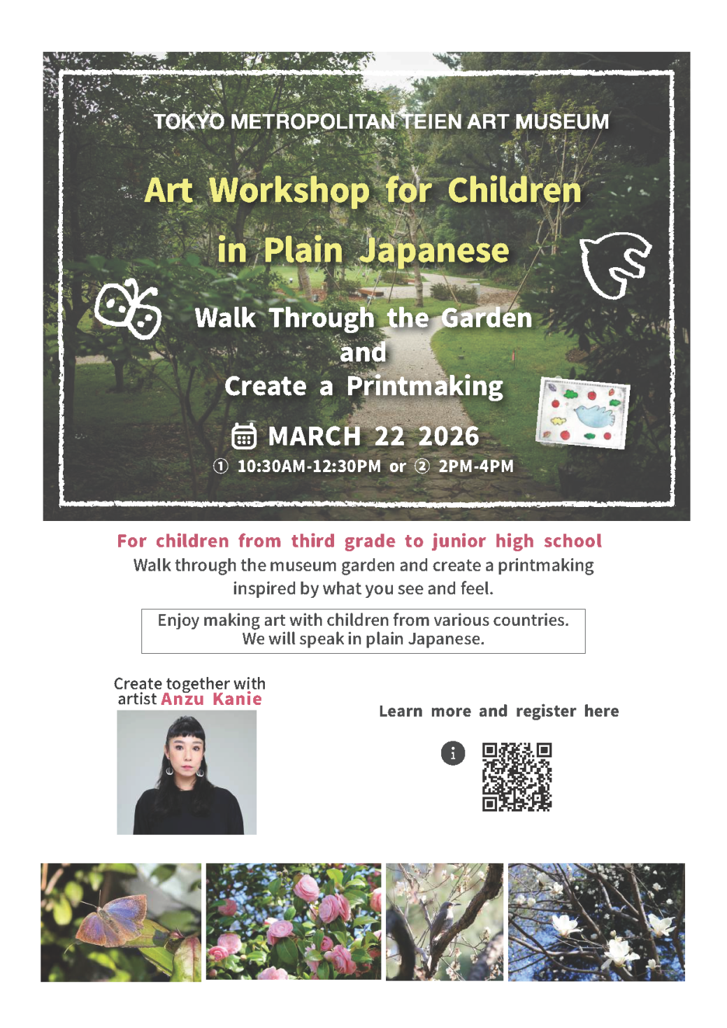 | Participation Fees | Free for children ※Parents/guardians must pay the museum Garden entry fee: Adults: ¥200 Seniors (65+): ¥100 |