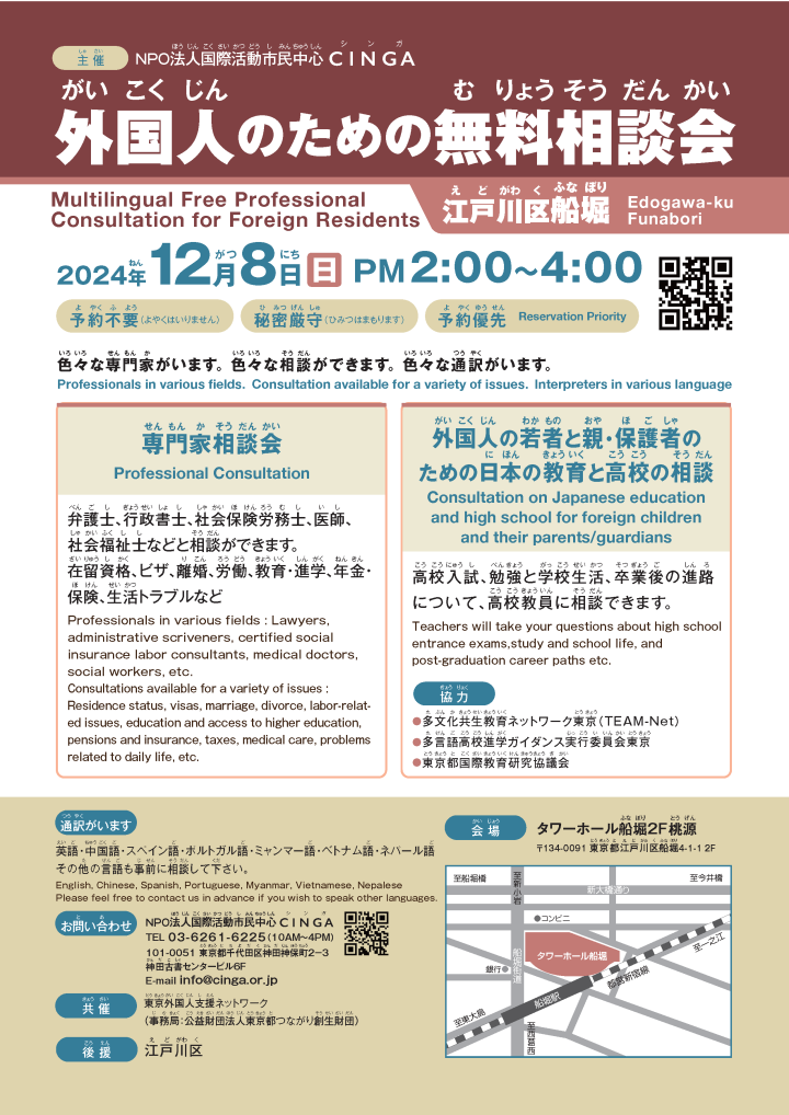 【2024/12/8(Sun.)】Free Consultation for Foreign Residents is held in Edogawa-ku -