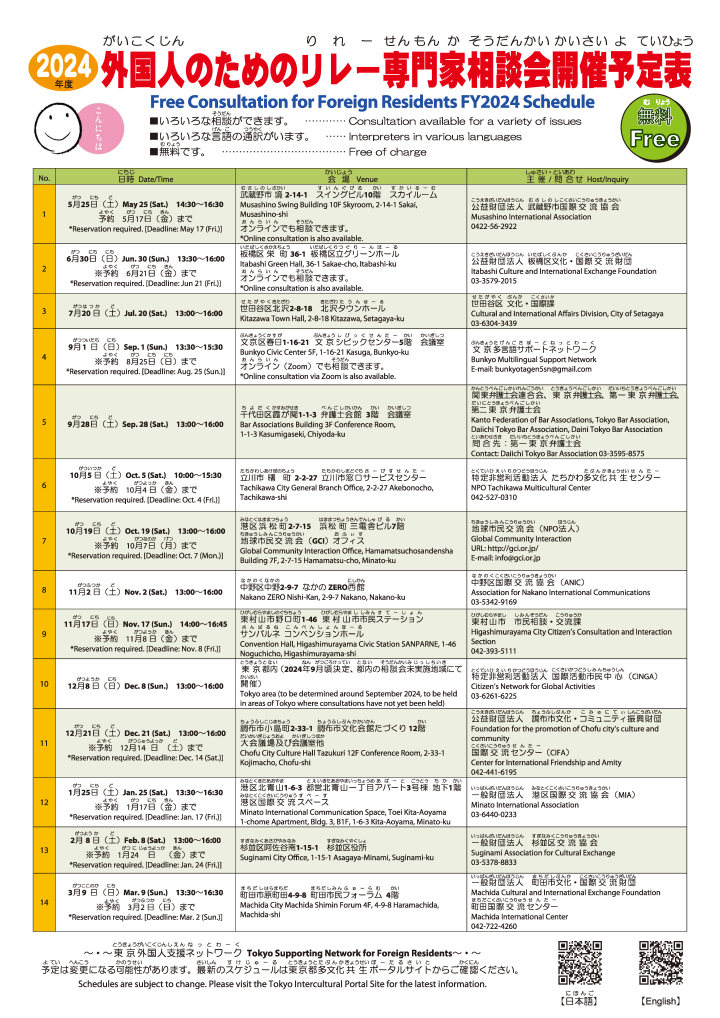 【2024/10/19(Sat.)】Free Consultation for Foreign Residents is held in Minato-ku -