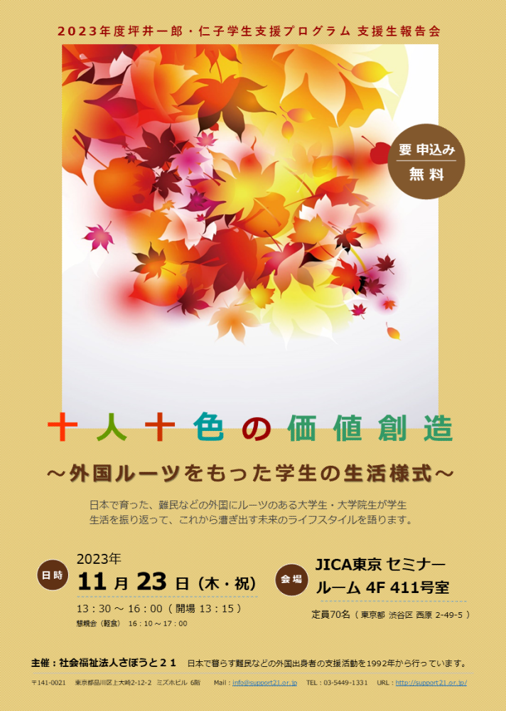 【社会福祉法人さぽうと21より】十人十色の価値創造~外国ルーツをもった学生の生活様式~