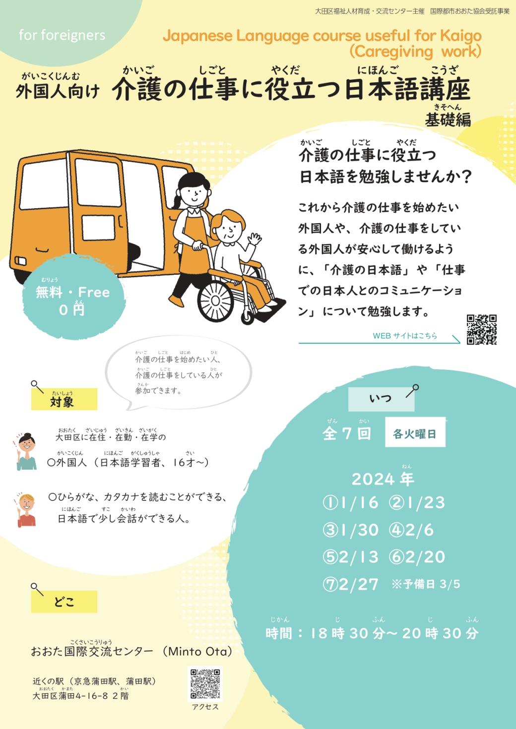 介護の仕事で役に立つ日本語講座 チラシ 日本語版