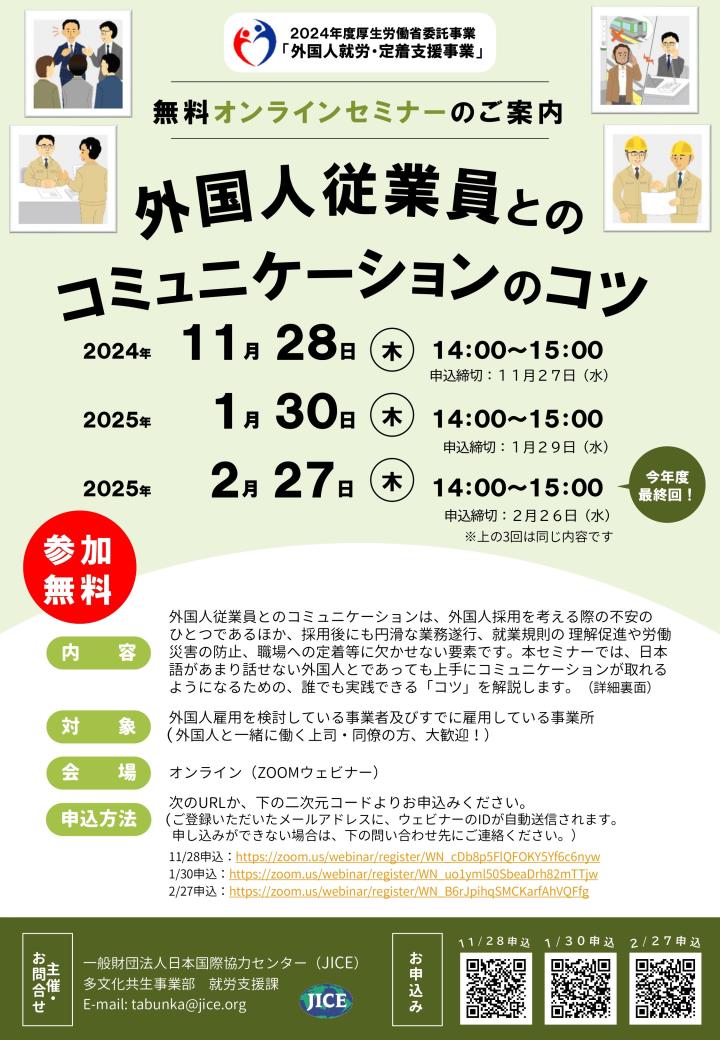 【無料オンラインセミナー】外国人従業員とのコミュニケーションのコツ -