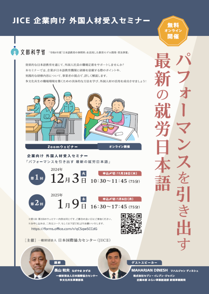 【企業・団体向け 外国人材受入セミナー】パフォーマンスを引き出す最新の就労日本語 -