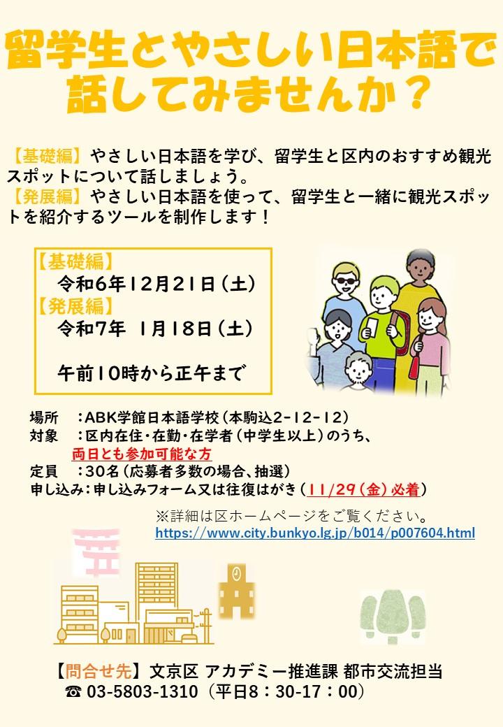 【文京区】2回連続講座「やさしい日本語で留学生と区内おすすめスポットを紹介しよう!」 -