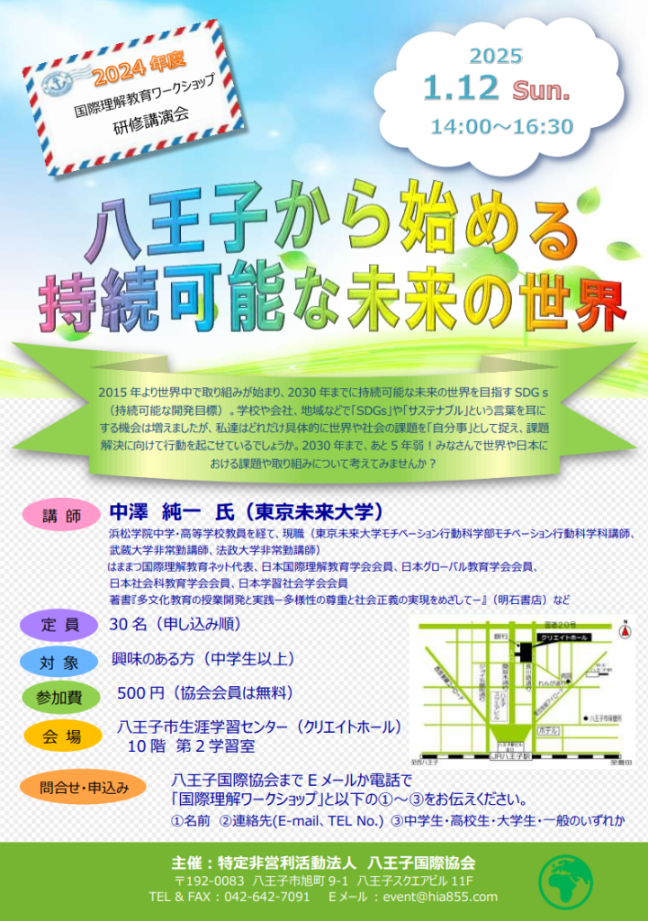【八王子市】研修会「八王子から始める 持続可能な未来の世界」 -