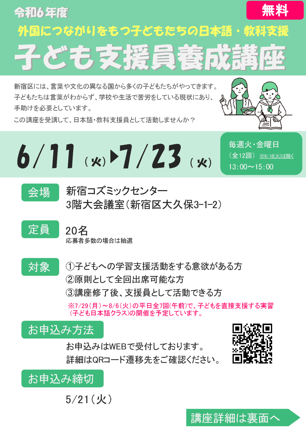 本講座修了後は、新宿区放課後日本語学習支援員への登録ができます。
