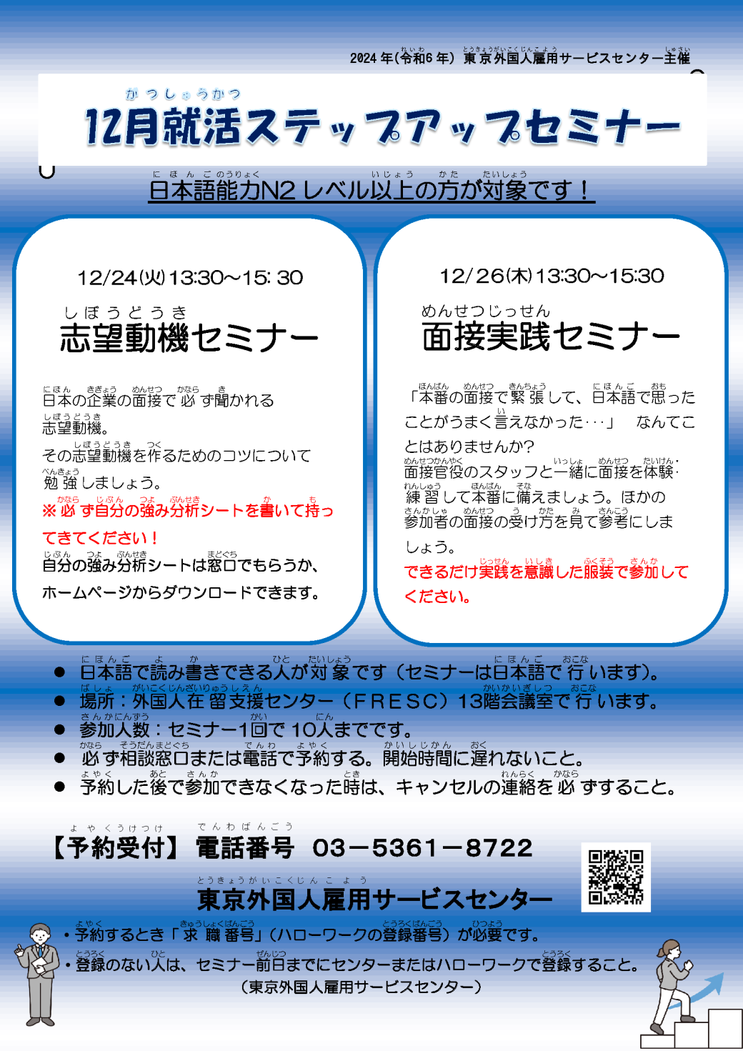 12月就活ステップアップセミナー(東京外国人雇用サービスセンター)