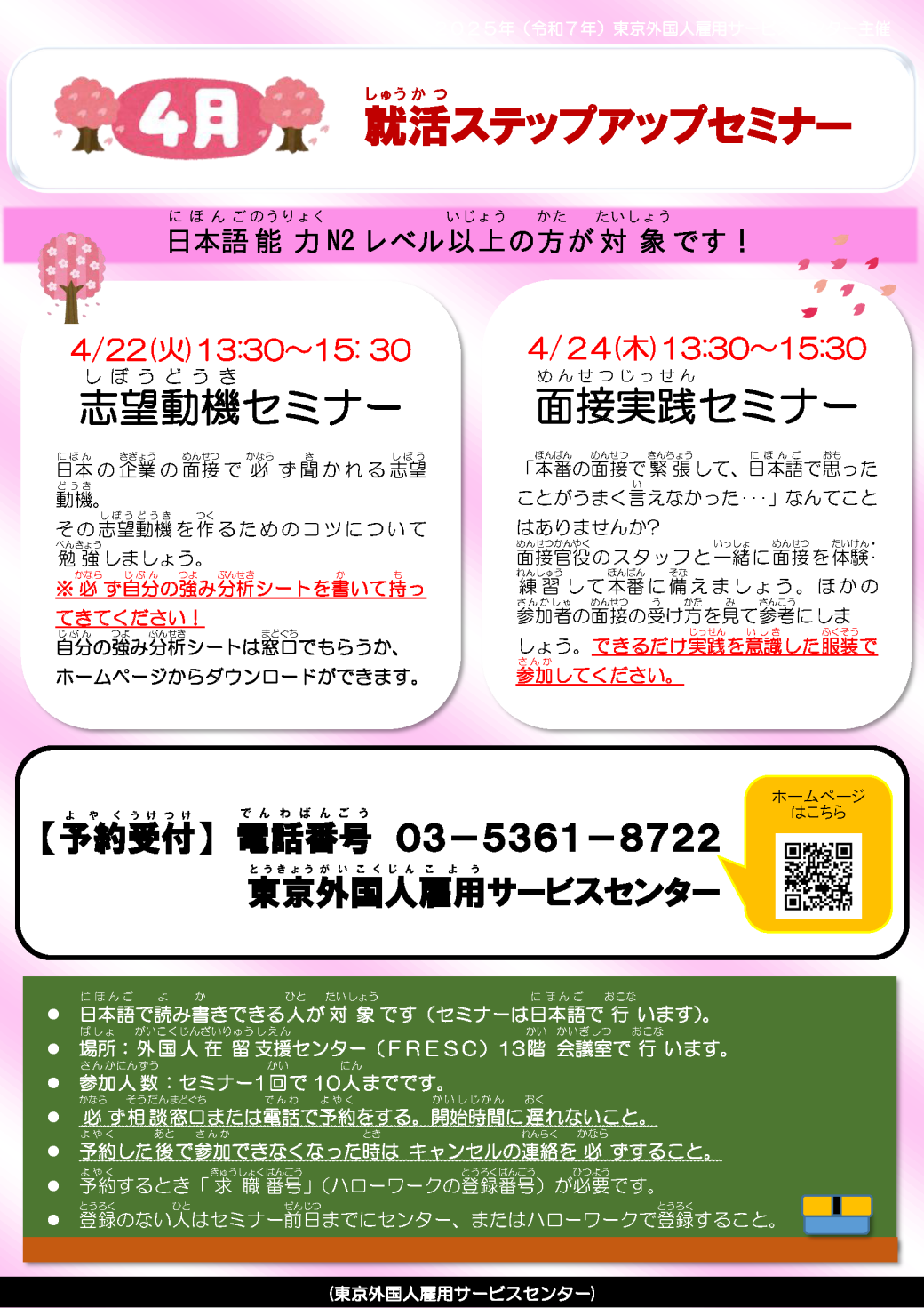 4月就活ステップアップセミナー(東京外国人雇用サービスセンター)