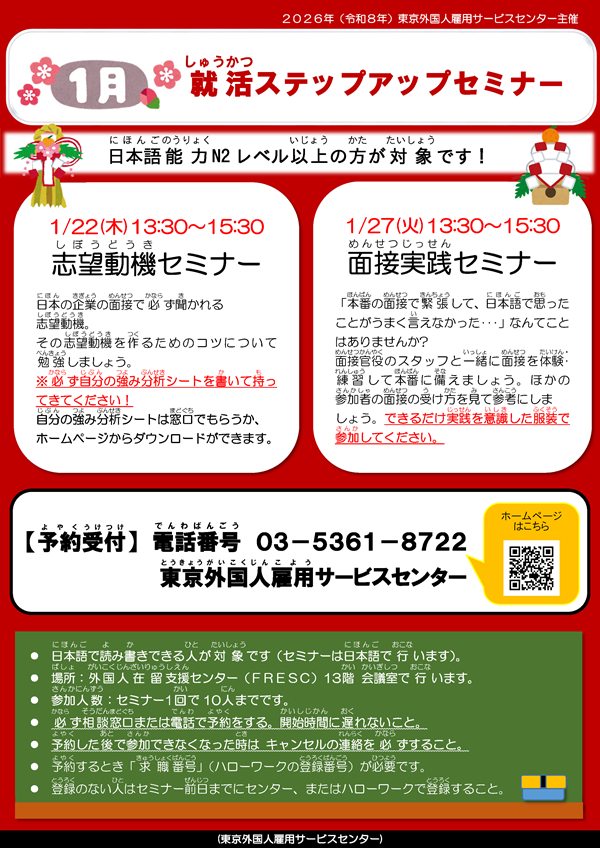 1月就活ステップアップセミナー(東京外国人雇用サービスセンター)