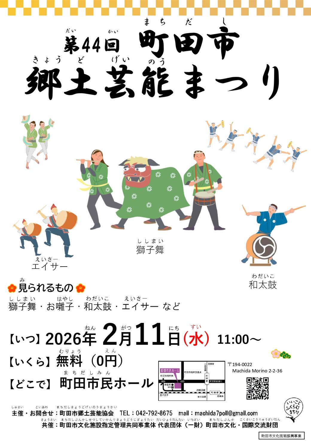 町田市郷土芸能協会は、「第44回町田市郷土芸能まつり」を開催します。