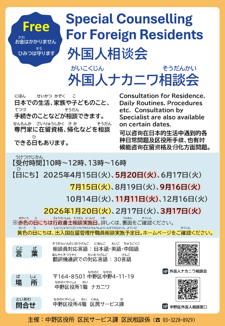 【中野区】外国人ナカニワ相談会 -
