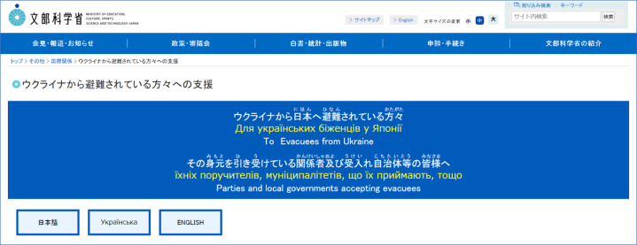 【文部科学省】「ウクライナから避難されている方々への支援」サイト開設 -