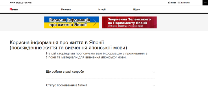 「NHKワールド JAPAN」に ウクライナ語(ご)の ページが できました。 -