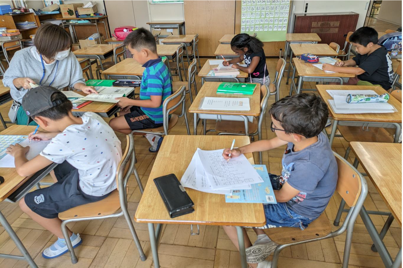 学校での日本語学習支援は、2023年度に市内の小学校9校34名、中学校4校9名で、年々支援する児童生徒が増えています。担任の先生と相談しながら、サポートの方法を決めています。