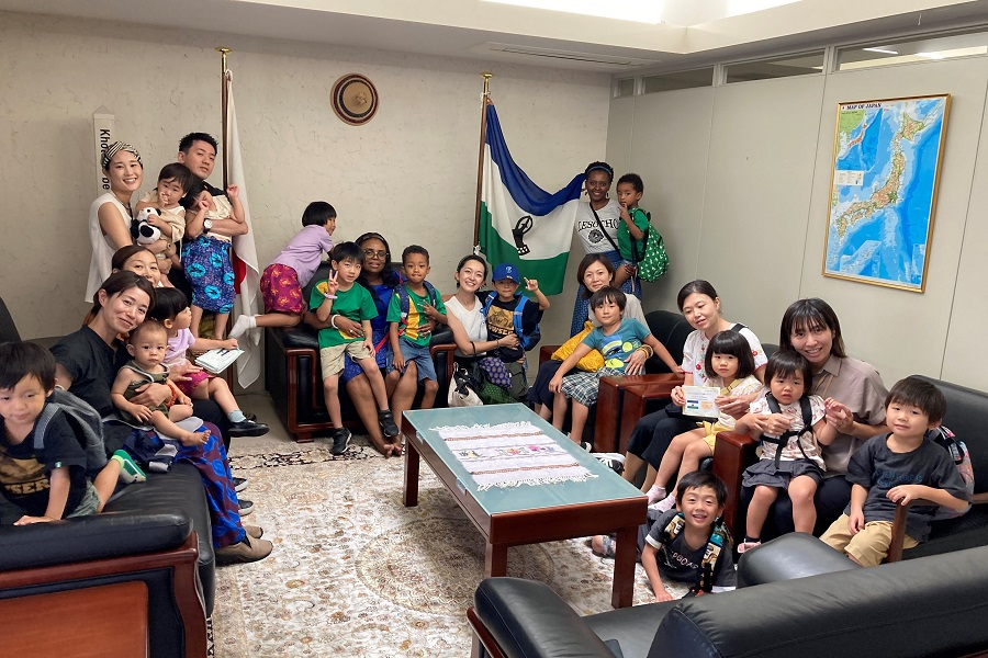 DANRO第1回目の活動では、ルーシーさんが母国のレソト王国について紹介しました。2022年の夏休みには、レソト王国の大使館に訪問をしました。ルーシーさんが当時の大使と知り合いであったことから実現したイベントです。大使はゼリーを作って待っていてくれ、多くの子どもたちがレソト王国についての話を聞きました。日本人メンバーで笛 の奏者がいたため、レソト王国の国歌と唱歌の「故郷」を演奏し、大使館の皆さんからはお返しにレソト王国のダンスが披露されました。西田さんは「子どもを受け入れよう、みんなで一緒に育てていこうという、レソト王国の温かいお国柄を感じられました」と、振り返ります。