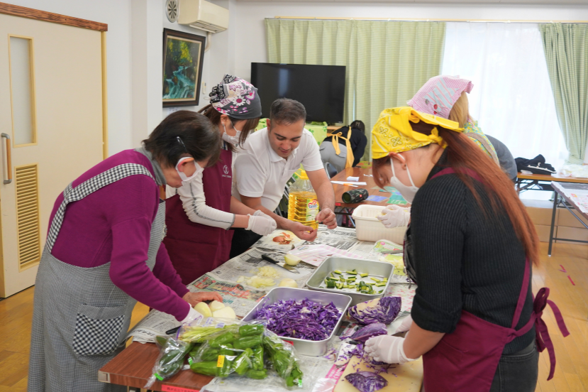 そして昨年12月には、一昨年に引き続き、多国籍の料理を一緒に作って食べる「多文化交流会」を開催しました。昨年は、ネパール、モンゴル、ミャンマー出身者の協力のもと、各国の料理を作ったそうです。普段あまり馴染みのない料理や食材を前に、みんなで会話を楽しみながら食事をしました。