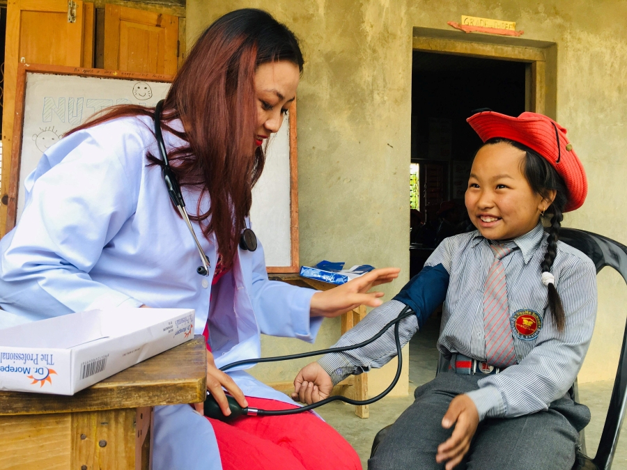 ネパールで初となる健康診断や給食の文化も取り入れられています。写真提供:YouMe Nepal