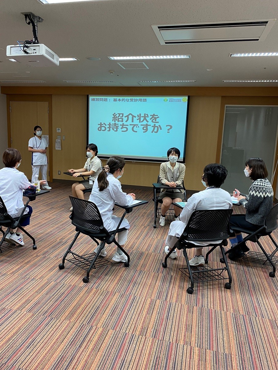 外国人の受診者数が一番多い診療科は産婦人科なので、最初のワークショップは助産師を対象に行いました。その後も薬剤師、地域医療連携室、病院ボランティア、歯科など、さまざまな職種を対象に開催しています。昨年からは卒後一年目の初期研修医の研修プログラムと当院附属の看護学校の授業にやさしい日本語のワークショップが組み込まれました。看護学生は卒業までに必ず一度は受講することになっています。