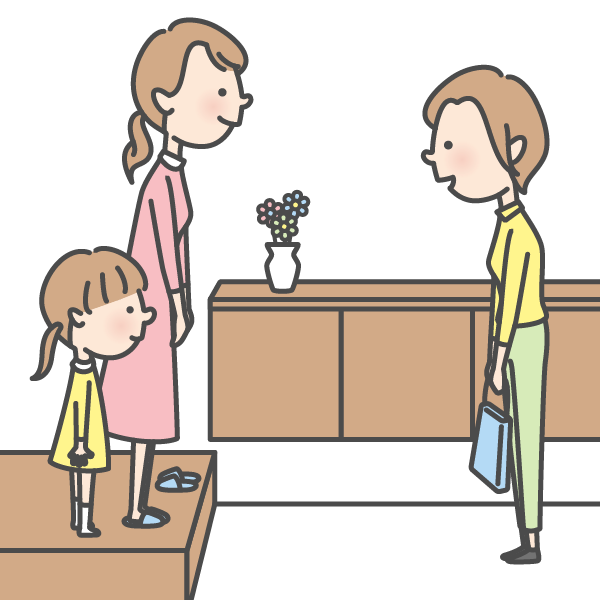 担任の 先生<クラスの 子どもの 世話をする 先生>が クラスの 学生の 保護者と 話すために 家に 来ること