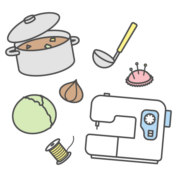 料理の しかた、服のこと、子どもや お年寄りの 世話などについて 勉強します。
