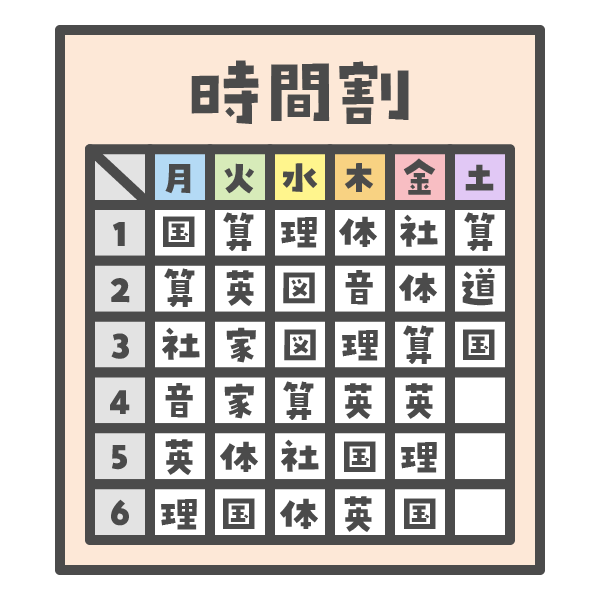 1週間の 授業が 書いてある 表