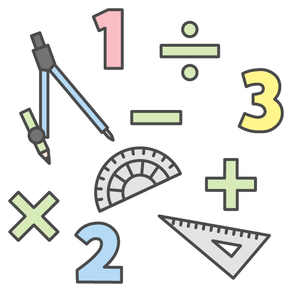 数を 数える 方法<method>、計算<+-×÷>、形などを 勉強する 教科<授業の 種類>