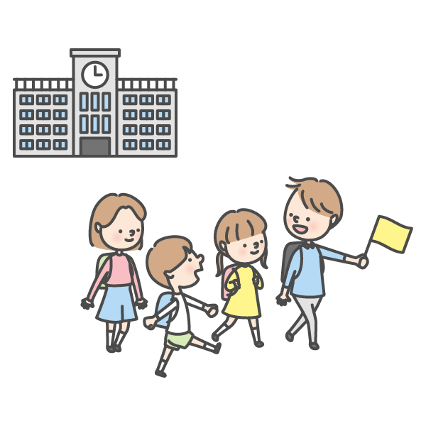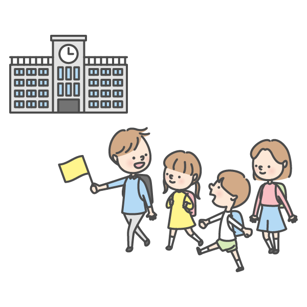 近くに 住んでいる 生徒が 集まって、みんなで 学校に 行くこと